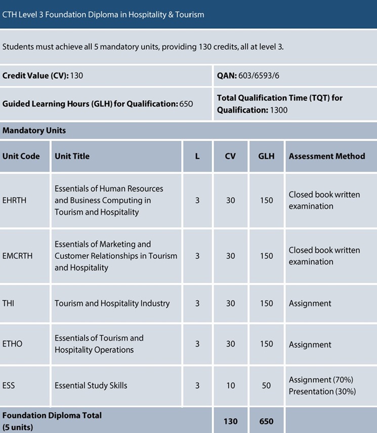 • Level 3 Foundation Diploma in Hospitality and Tourism